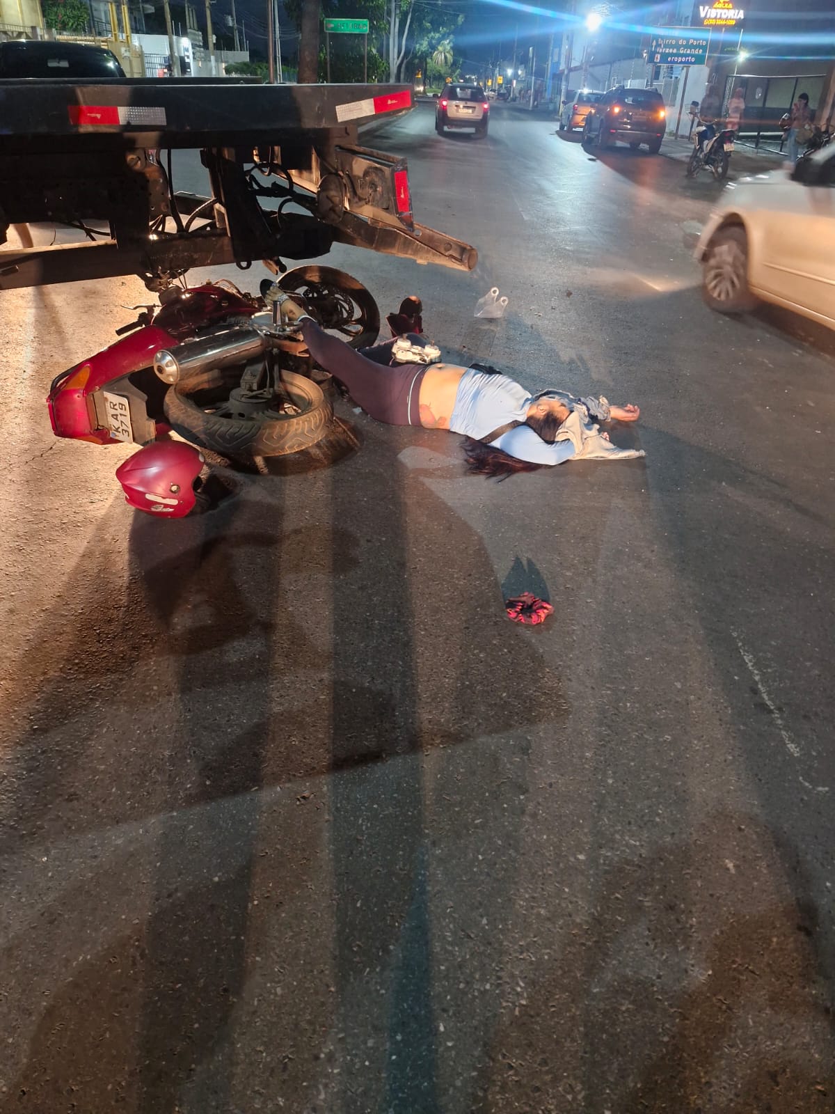 Uma mulher, de idade estimada entre 30 e 40 anos, morreu em um trágico acidente de trânsito na noite desta sexta-feira (9), na Avenida Beira Rio, em Cuiabá. O acidente envolveu uma motocicleta e um caminhão-guincho de plataforma.