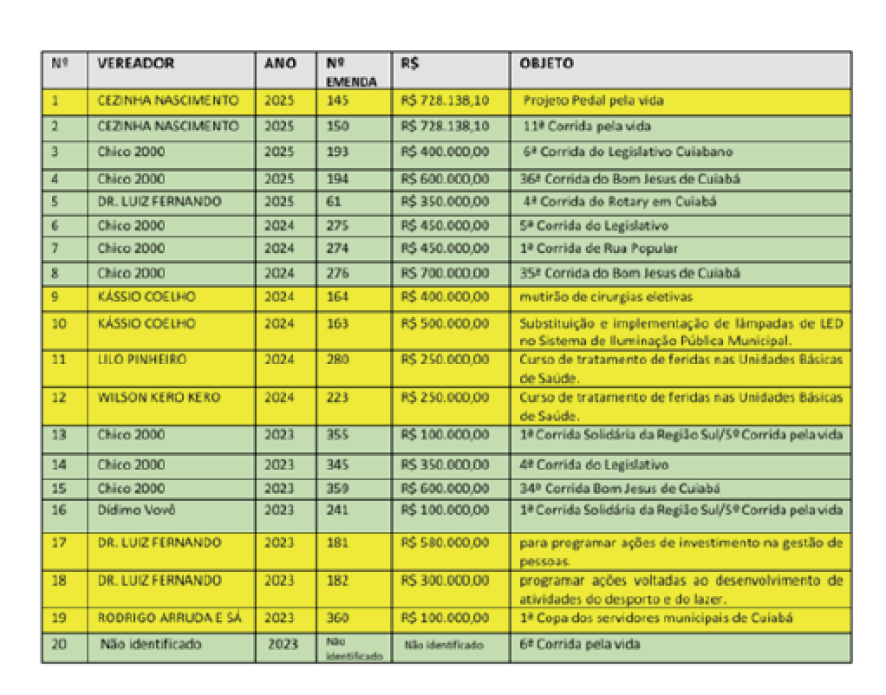 Uma emenda de 2023, da 6ª Corrida Pela Vida, sem autor e valor também está na lista. Todas as emendas a serem auditadas referem-se a corridas de rua.